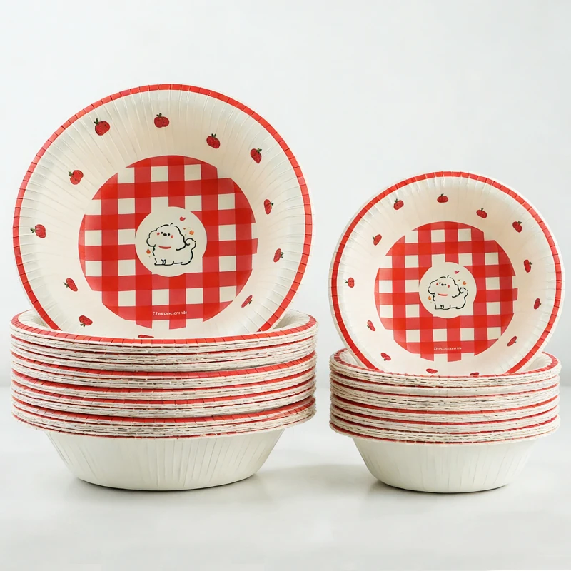 30pcs Parent-Child Paper Bowls Set Red Plaid Cute Dog Pattern 200ml/500ml Salad Soup Snack Bowls for Lunch Party Meals