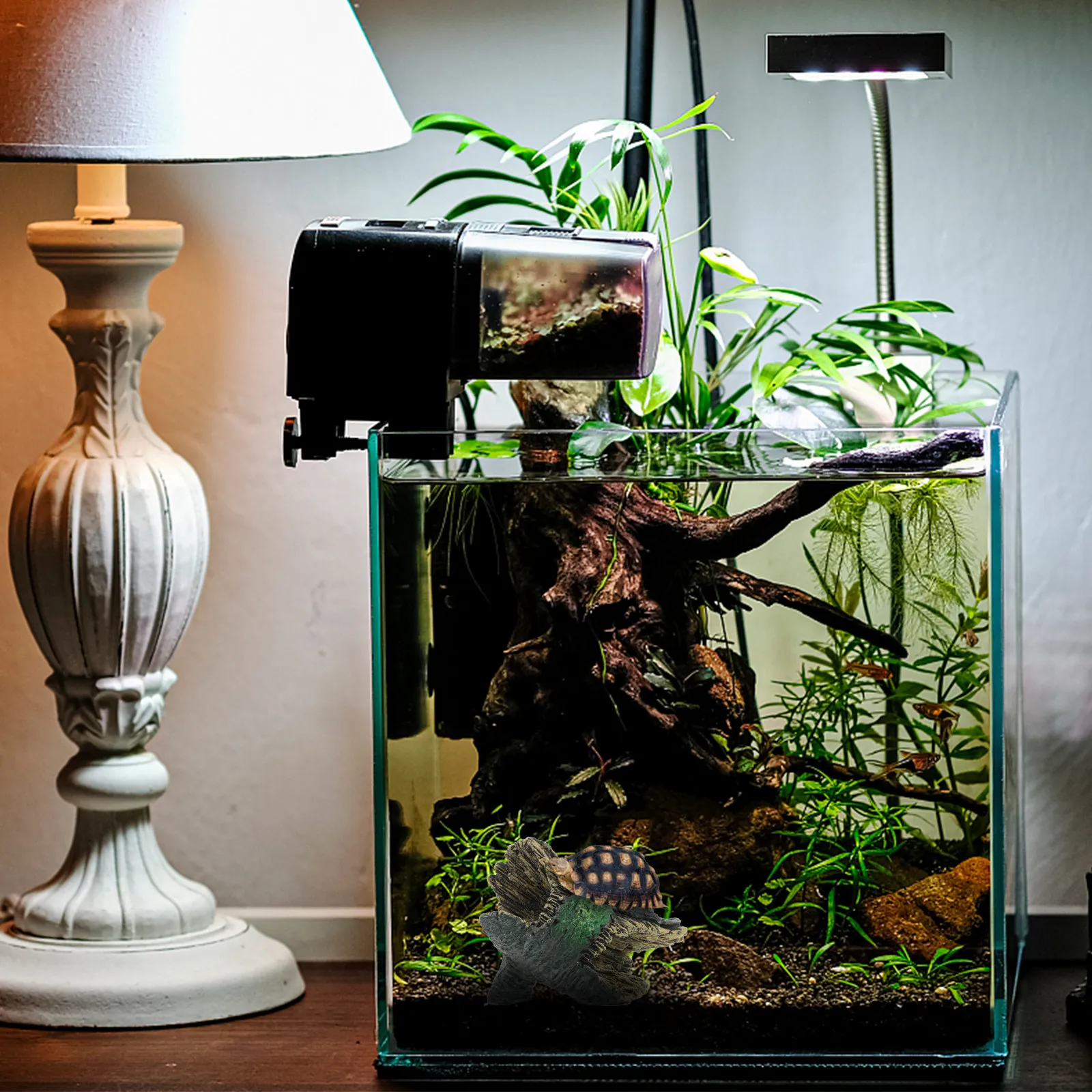 Reptiles, small crawling pets, geckos, toys, snake horned frogs, spiders, evading with water basins, cave climbing boxes