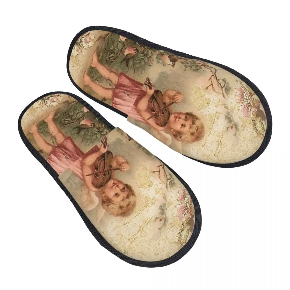 Custom Victorian Angel Soft Memory Foam House Slippers Women Vintage Angel Comfy Warm Anti-skid Sole Slipper