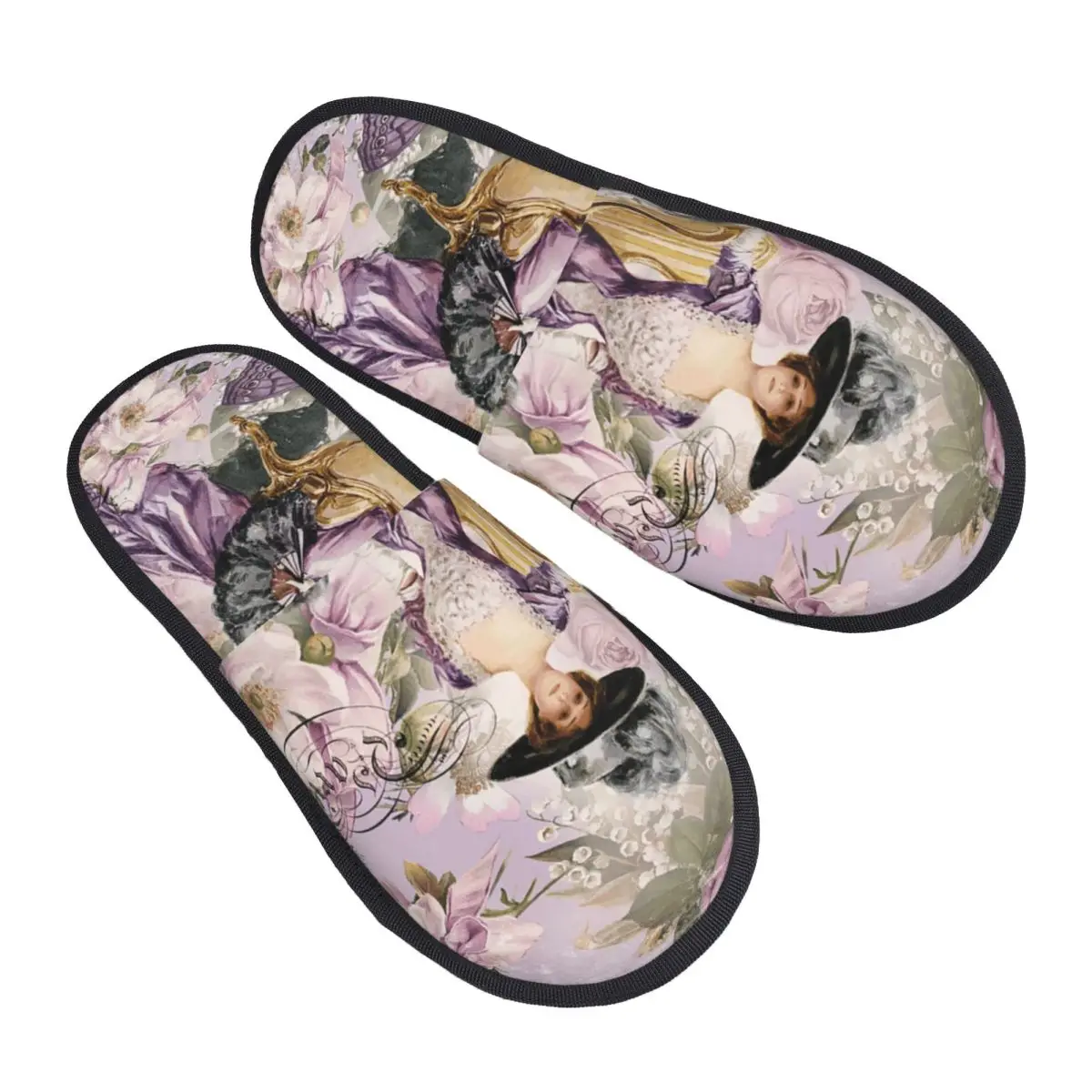 Print Victorian Angel House Slippers Soft Warm Shabby Chic Vintage Lady Print Memory Foam Fluffy Slipper Indoor Outdoor Shoes