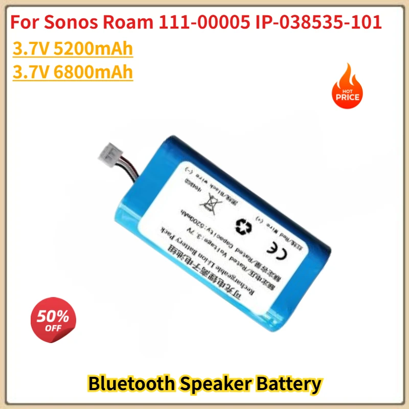 111-00005 3.7V 6000mAh Replacement Bluetooth Speaker Battery for Sonos Roam IP-038535-101 Large Capacity Rechargeable Battery