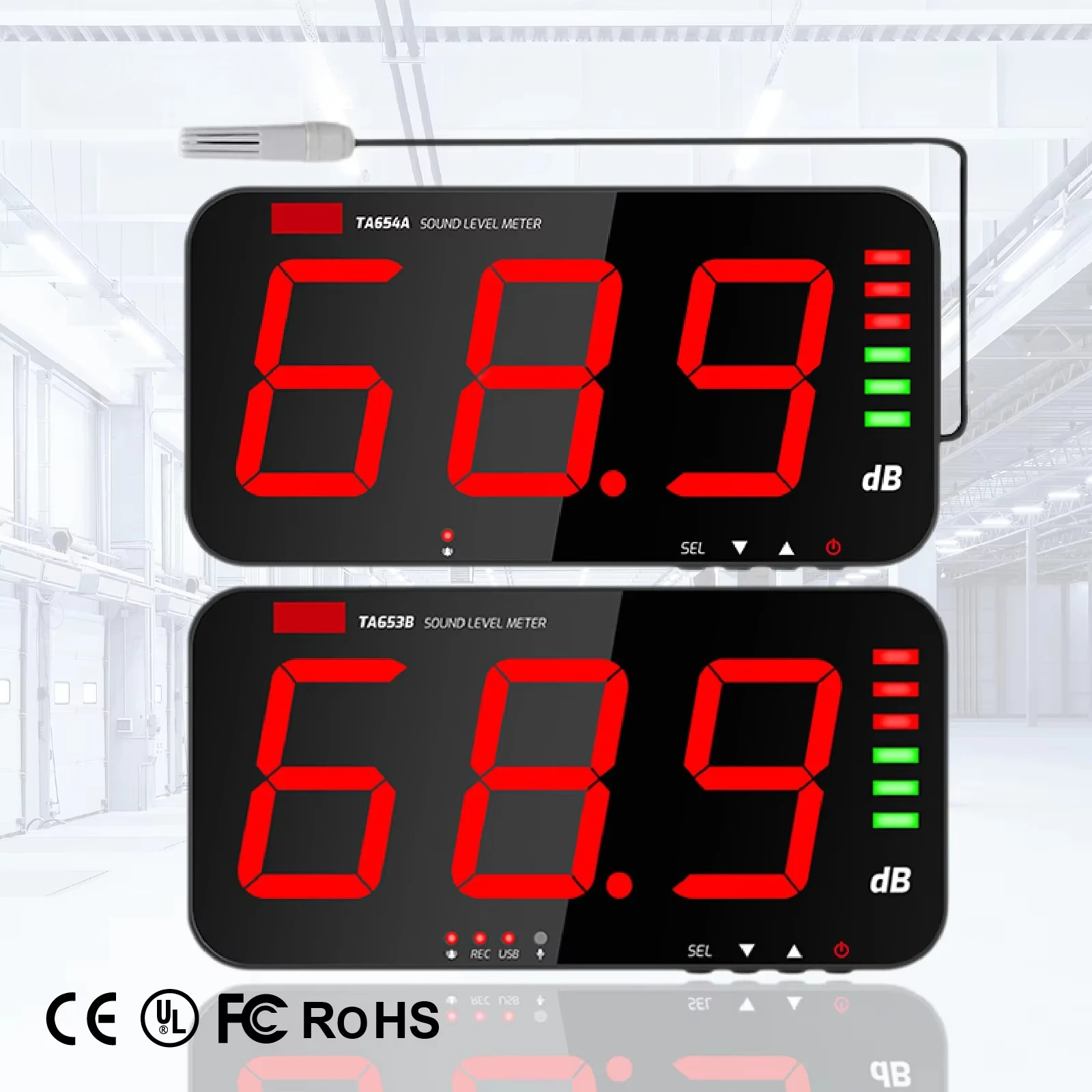TA653 TA654 Bar Classroom Home Monitoring Alarm LED Display Wall Mounted Real Time Digital SPL Noise Decibel Sound Level Meter