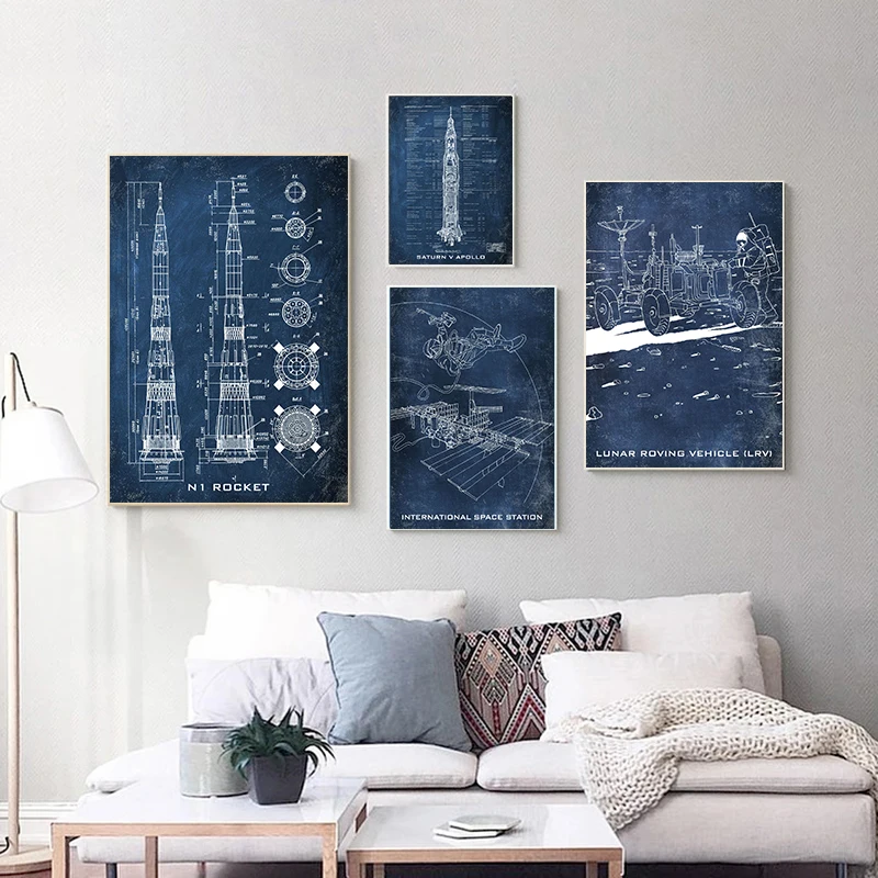 Outer Space Retro Decor Poster Rocket Patent Gallery Wall Art Canvas Picture Print Aviation Artwork Blueprint Posters Painting