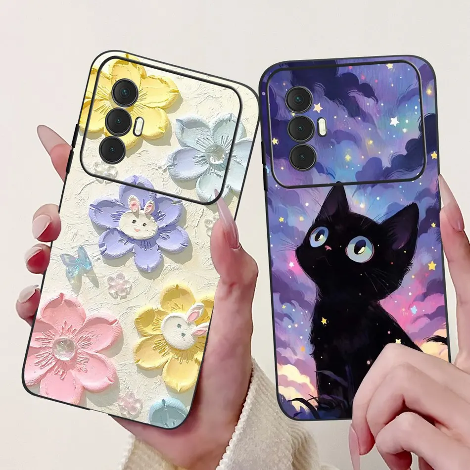For Tecno Spark 8 Pro 8T 8P Elegant Floral Cat Phone Case For Tecno Spark8 8T 8P 8Pro Black Silicone Soft TPU Cases Bumpers
