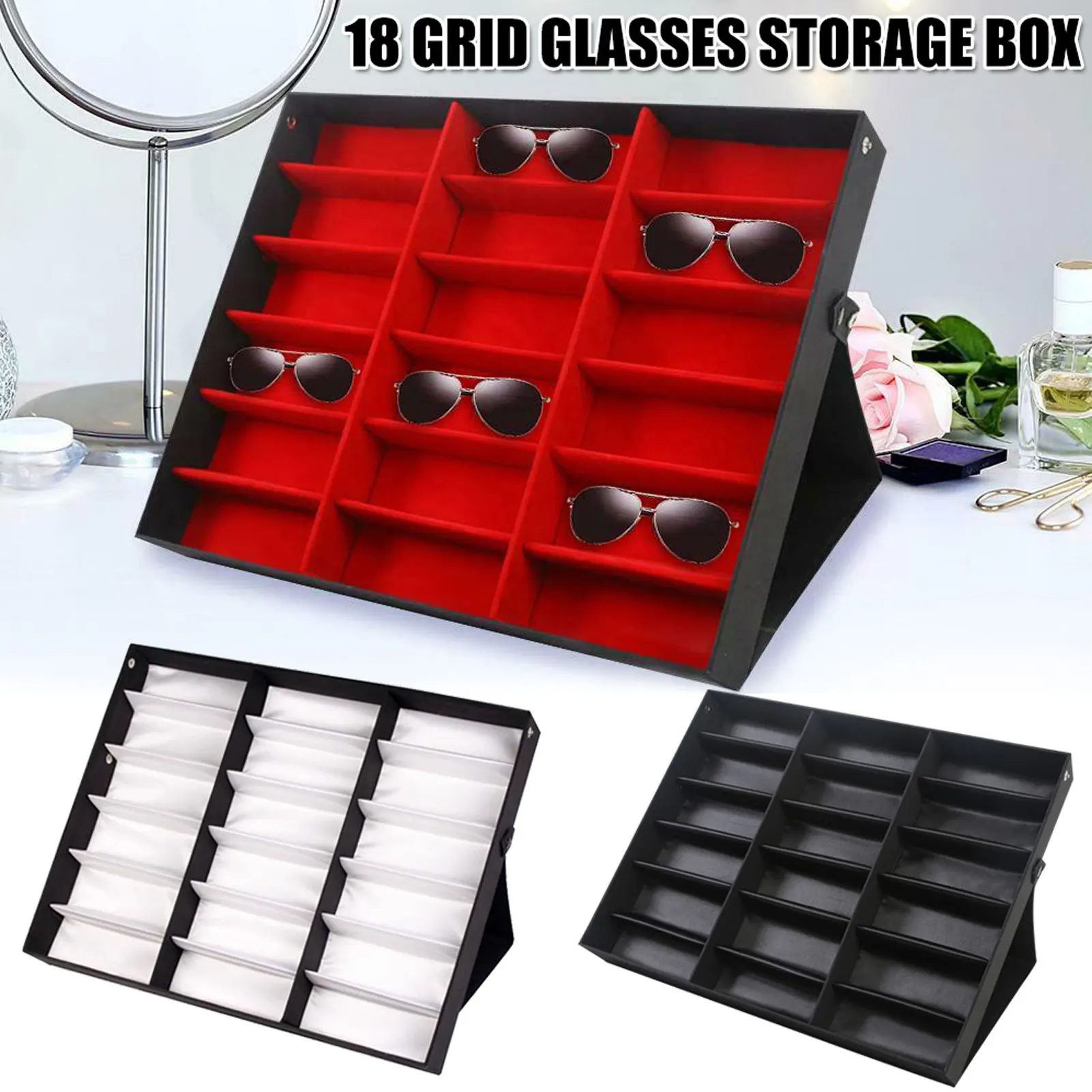 Glasses Holder Case Organizer 18-Grid Eyewear Display Case Storage Box Tilt Standing Grid Spectacles Case