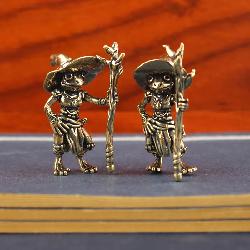 Vintage Brass Frog Wizard Statue Desktop Ornament Metal Cute Figurines Miniatures Home And Office Decoration Car Ornaments