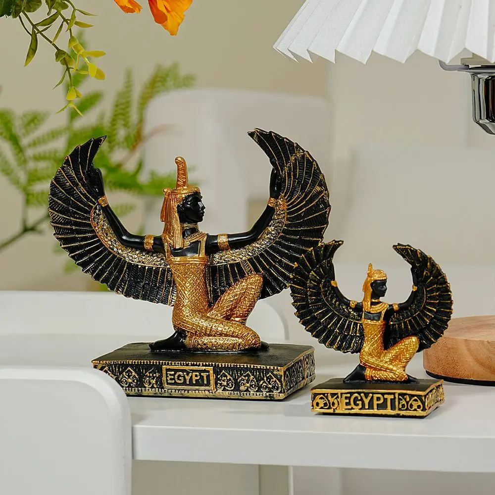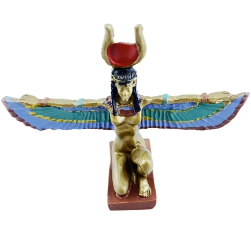 12.8cm/8cm Egyptian Goddess Isis Statue Ancient Mythology Sculpture Figurine Handmade Resin Antique Collectible Art Home Decor