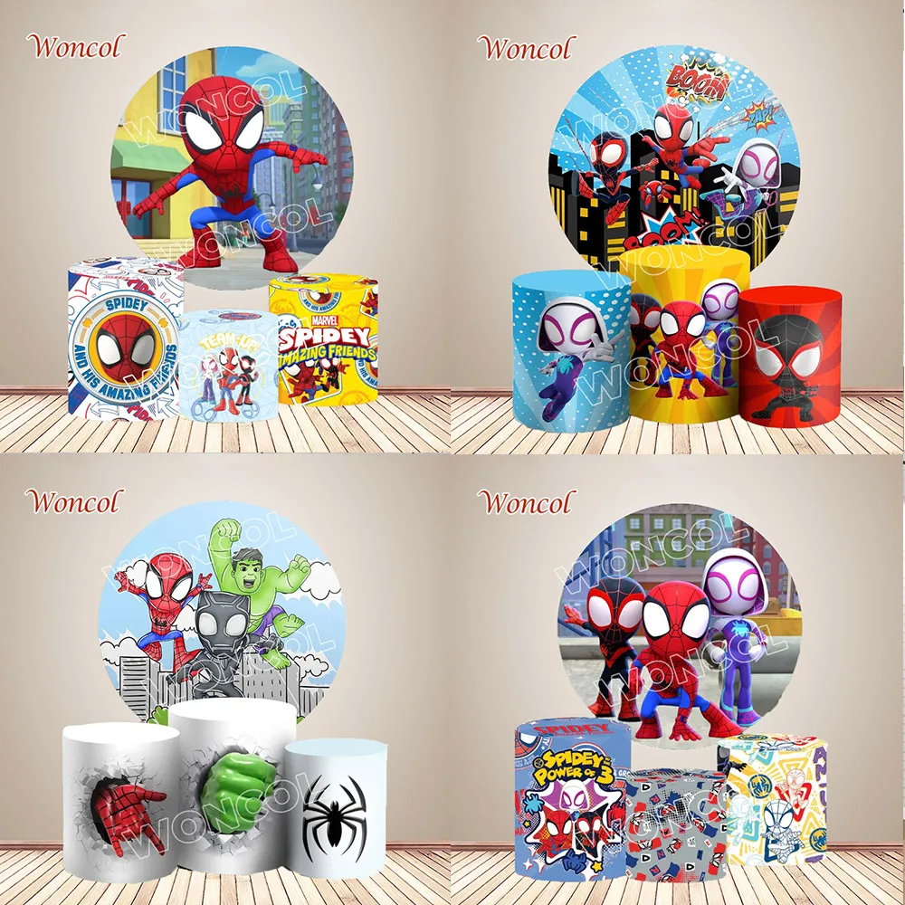 Spider-Man And His Amazing Friends Round Backdrop Spider-Man Spider Cylinder Cover Spiderman Birthday Background Photography Dec