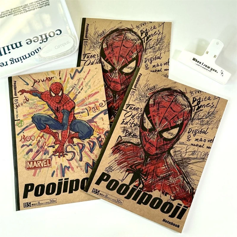 Marvel Spider-Man merchandise anime cartoon cute student kraft paper notebook for boys and girls portable lined diary gift