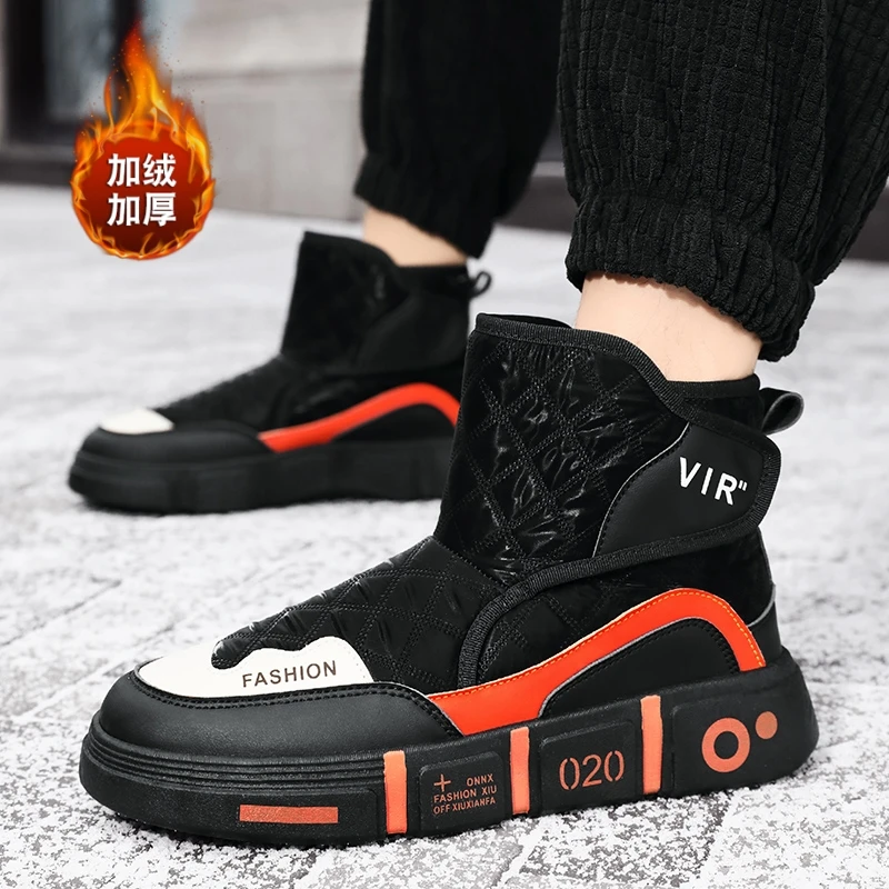 New Leather Men's Boots 2025 Winter Warm Fur Ankle Snow Boots Slip On Fashion Casual Work Shoes Botas Platform Boots