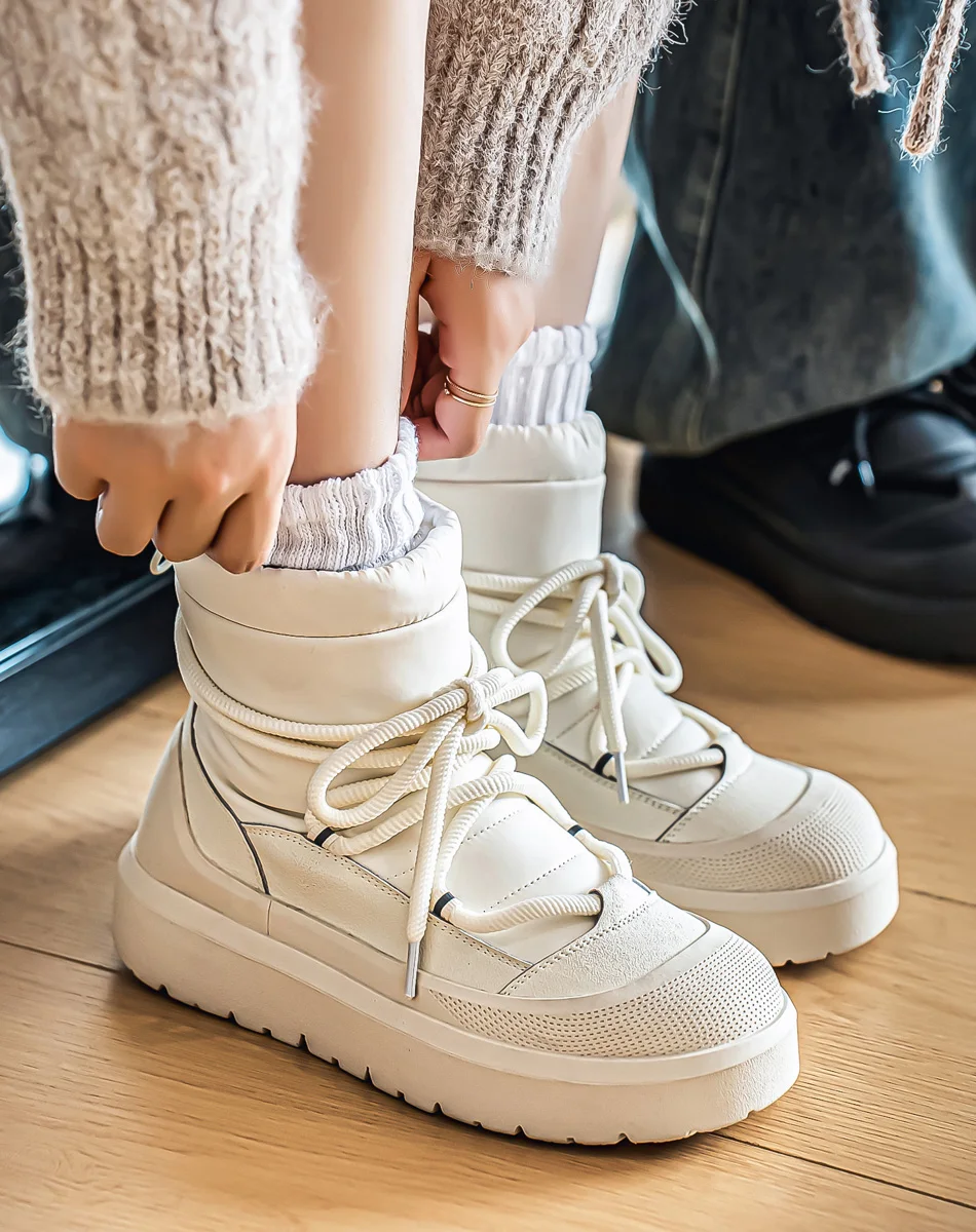 Unisex White Snow Boots With Plush Lined Interior For Warmth Lace Up Design Stylish Casual Winter Shoes For Men And Women