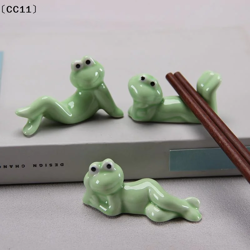 〔CC11〕1Pcs Spoon Fork Rest Tableware Restaurant Utensil Creative Ceramic Funny Frog Chopstick Holder Cutlery Stand Kitchen Tools