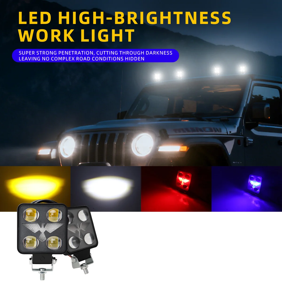 10inch LED Light SCAN- Off road Headlight Spotlight Truck Auxiliary Square Car Driving Flash White Yellow 100W 22000LM