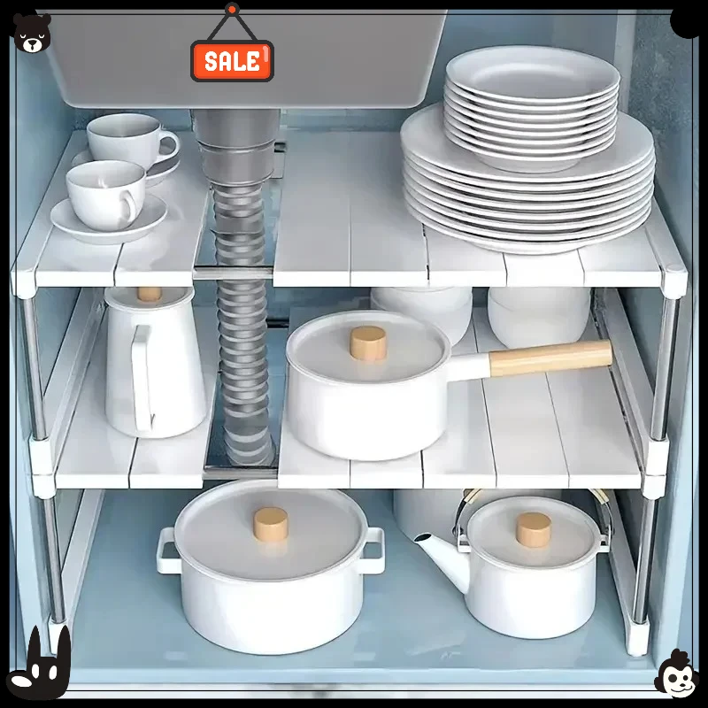 Telescopic stackable storage rack, partition-free punching wardrobe organizer, suitable for clothes, shoes, and sink cabinets.