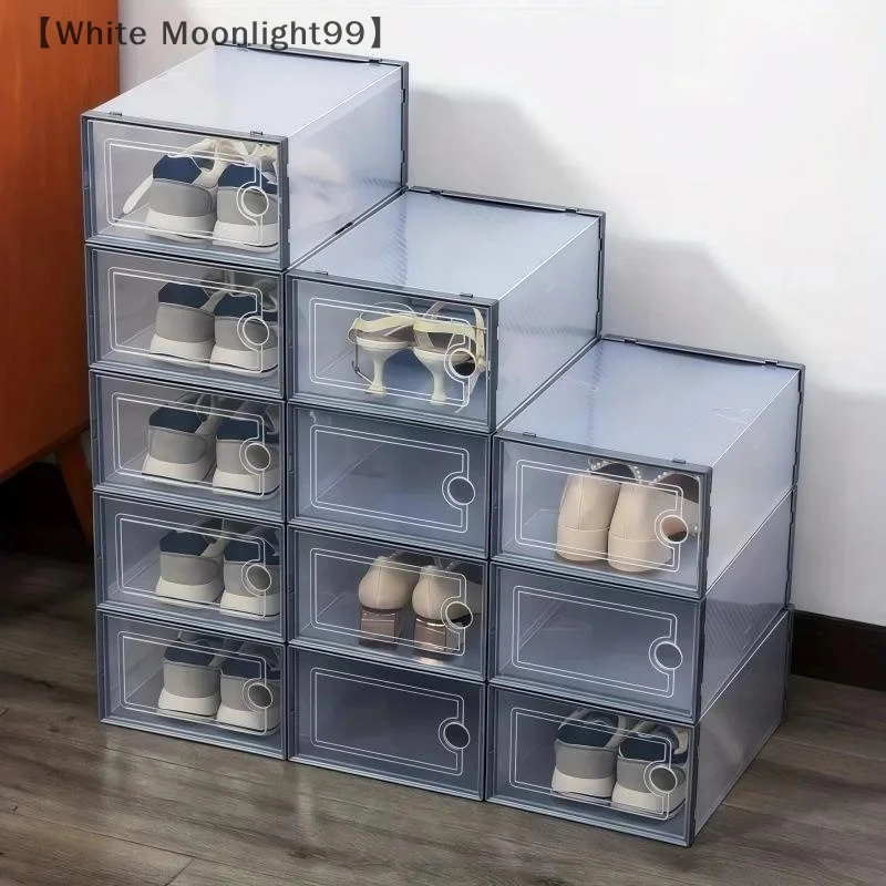 6Pcs Foldable Clear Shoes Storage Box Plastic Stackable Shoe Organizer Waterproof Dust Proof Shoes Stand Storage Organizer