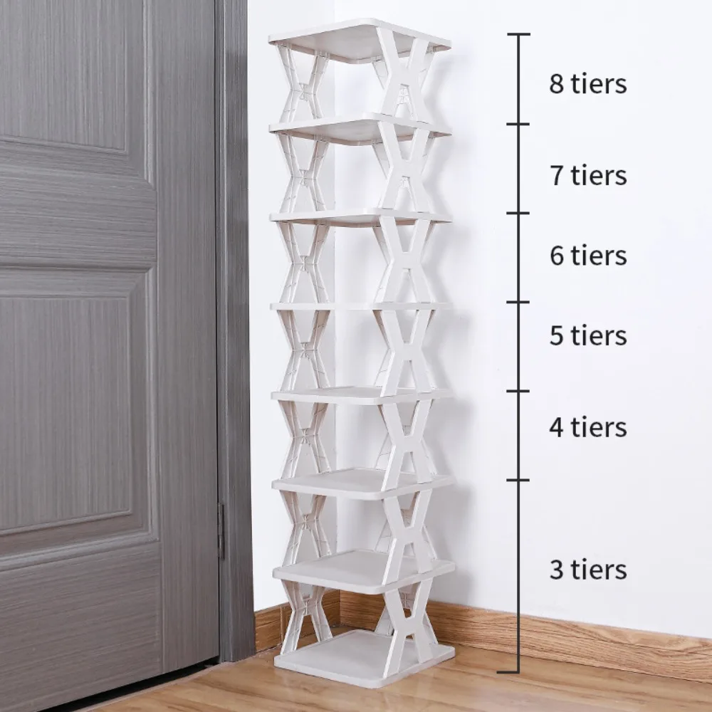 Simple Plastic Shoe Rack for Entryway Assembled Stackable Shoes Storage Dustproof Vertical Shoe Organizer for Door Entrance