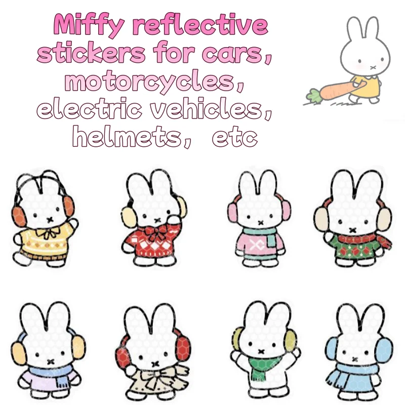 Miffy Car Reflective Decal - Cute Cartoon Decor for Electric Vehicles, Motorcycles, and Helmet Nighttime Reflective Stickers
