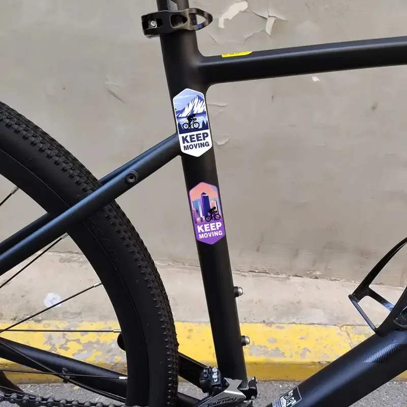 2Pieces KEEP MOVING Mountain Bike Stickers - Waterproof Hexagonal Frame Sticker