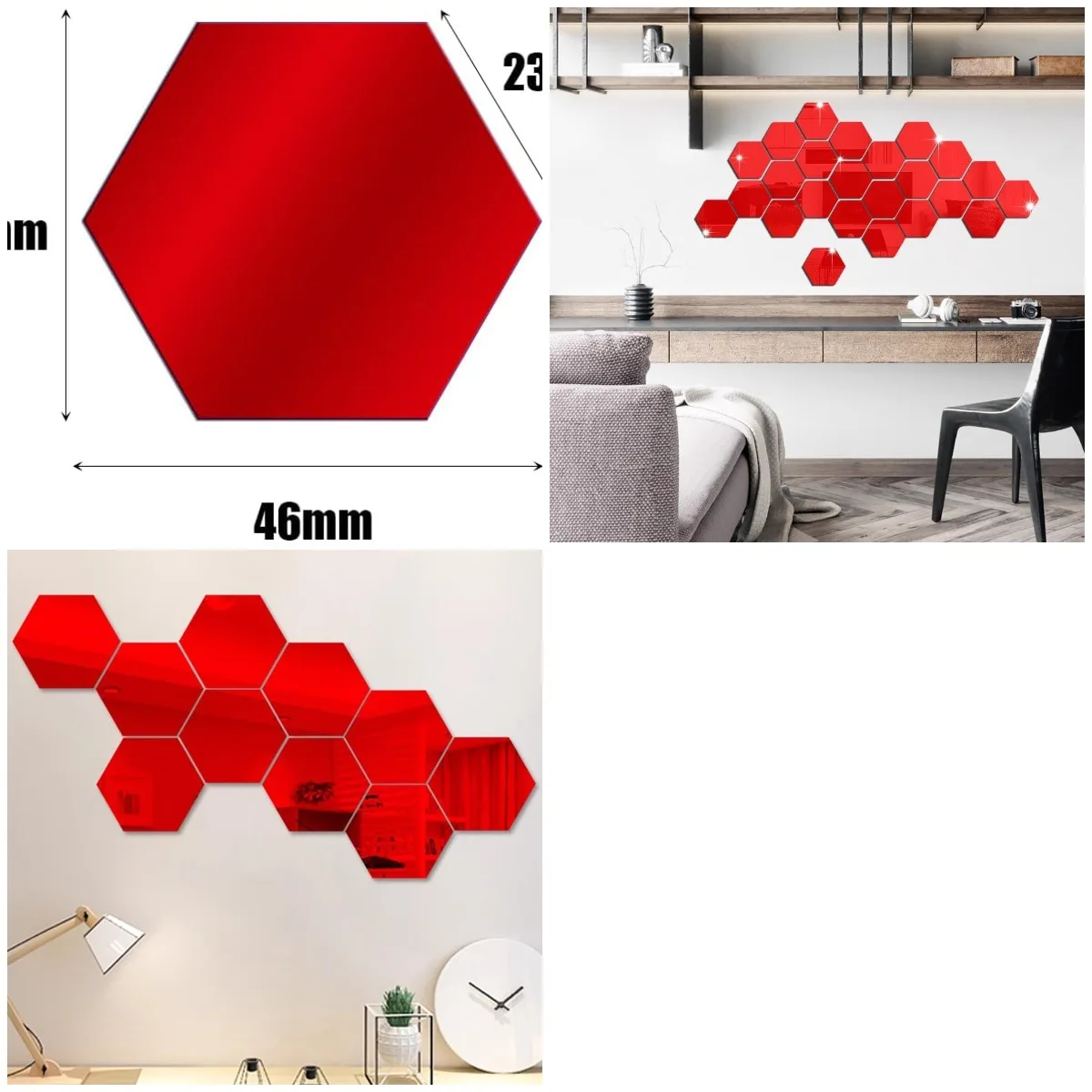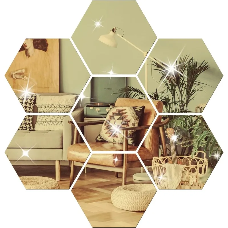 Acrylic Mirror Wall Sticker Pack Hexagon Gold Geometric Removable Decal for Bedroom Bathroom Sofa Wall Decor