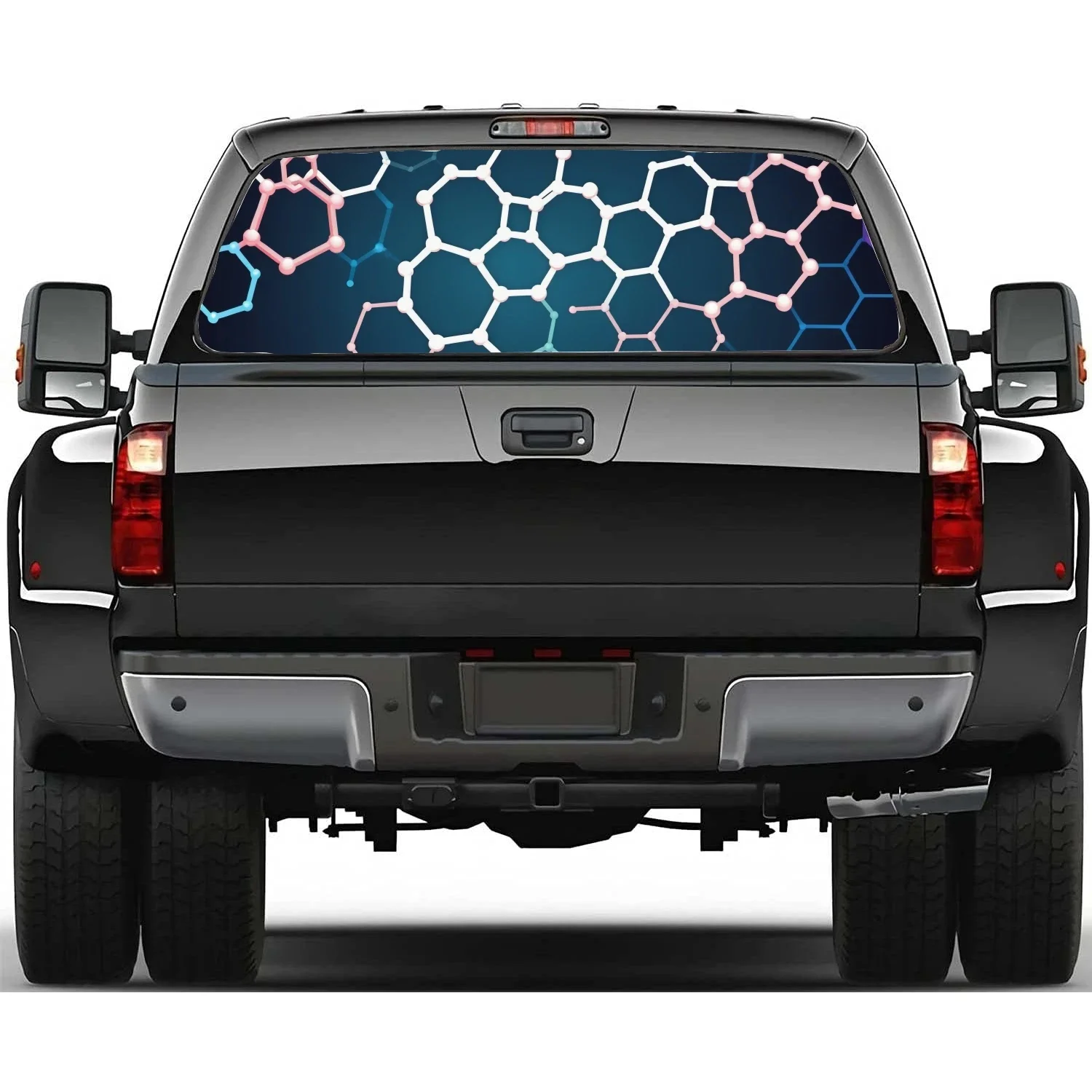 Metallic Hexagon Mesh Pattern Rear Window Decal Fit Pickup,Truck,Car Universal See Through Perforated Back Windows Vinyl Sticker