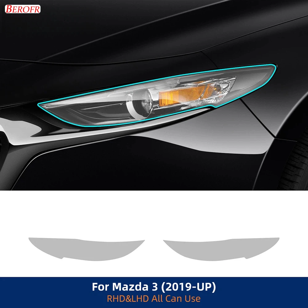 2 Pcs For Mazda 3 BP 2019 2020 Accessories Vinyl Protection Transparent TPU Sticker Car Headlight Tint Black Protective Film