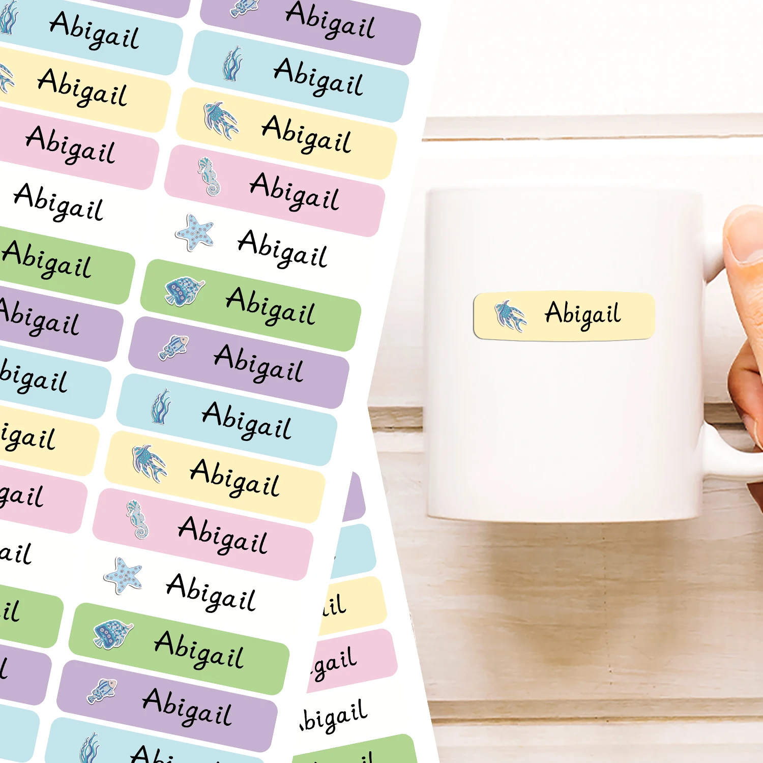 Name Stickers Custom Marine Organism Tags Personalized Kawaii Waterproof Sticker Children School Stationery Bottle Labels