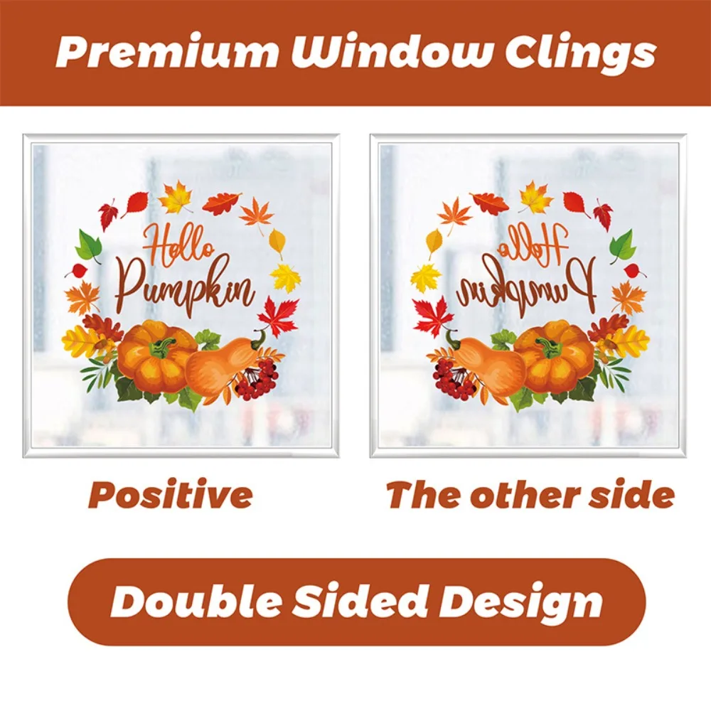 9pcs/pack Thanksgiving Window Stickers Fall Harvest Them DIY Autumn Window Clings PVC Turkey Pattern Maple Leaf Window Stickers