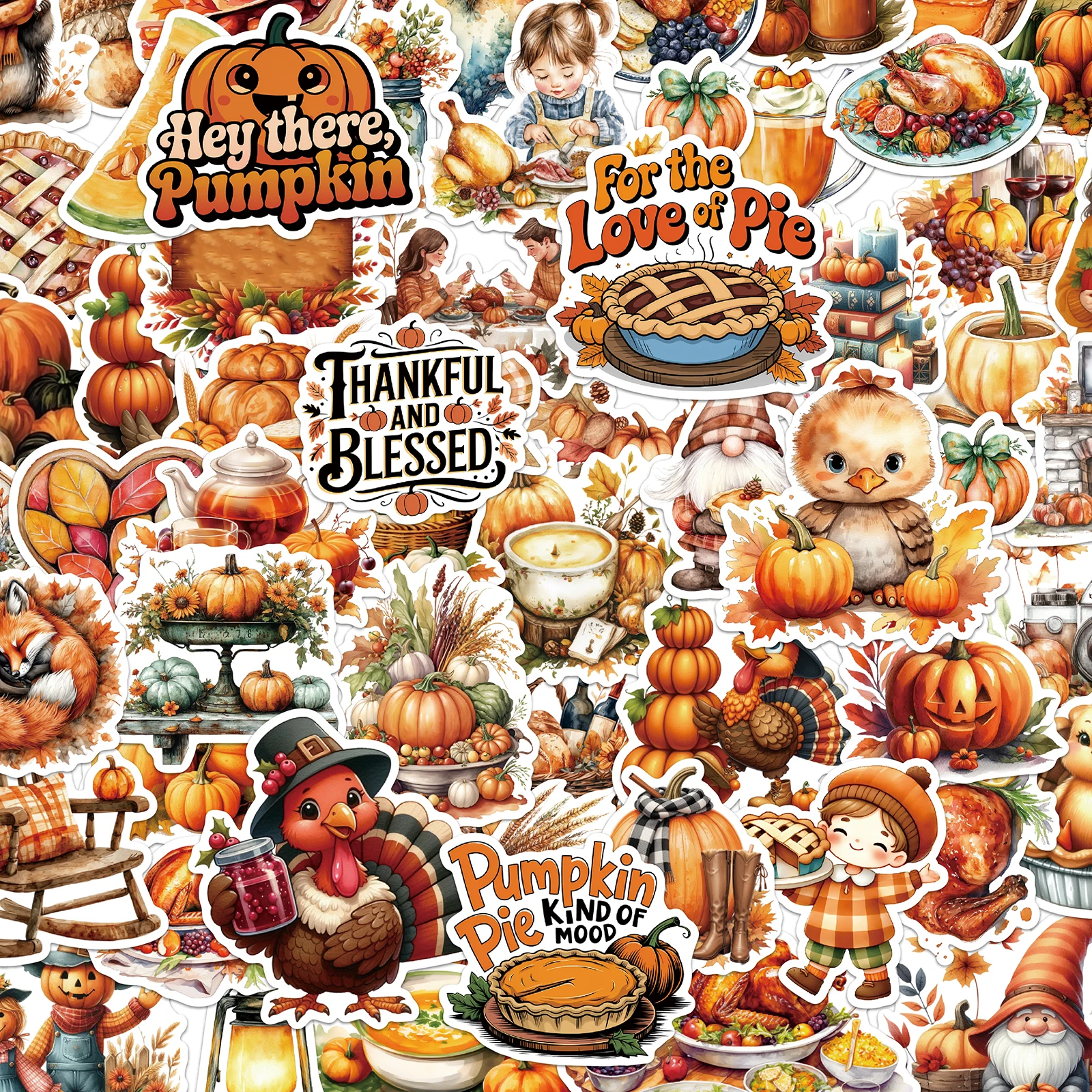 8 Sheets New Thanksgiving Day Stickers Pumpkin Turkey Cartoon Graffiti Decals DIY Scrapbook Water Bottle Laptop Phone Decoration