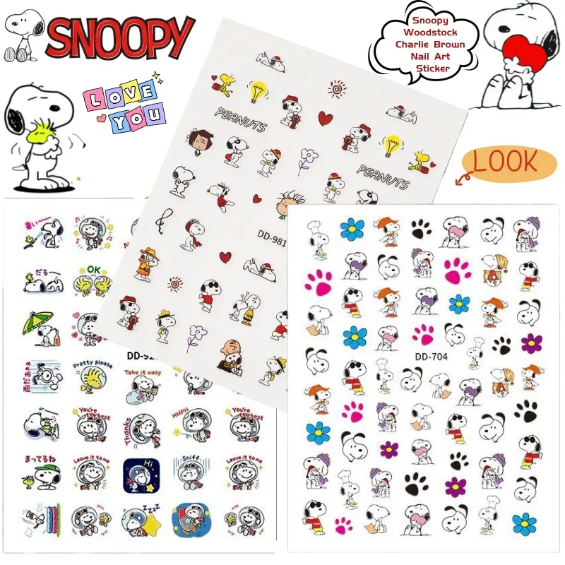 Snoopy Woodstock Charlie Brown Cartoon Cute Kawaii Nail Art Stickers Creative Animation Peripheral Self-adhesive Nail Stickers