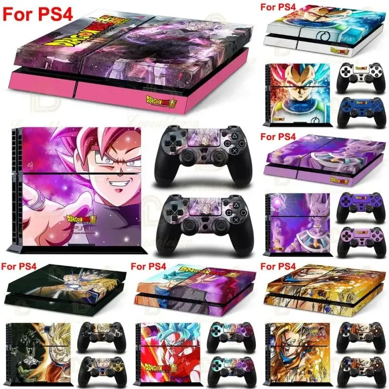 Fashion Dragon Ball Z Console Stickers for SONY PS4 Pro Slim Son Goku Full Body Skin Decals for PlayStation 4 Controller Gamepad
