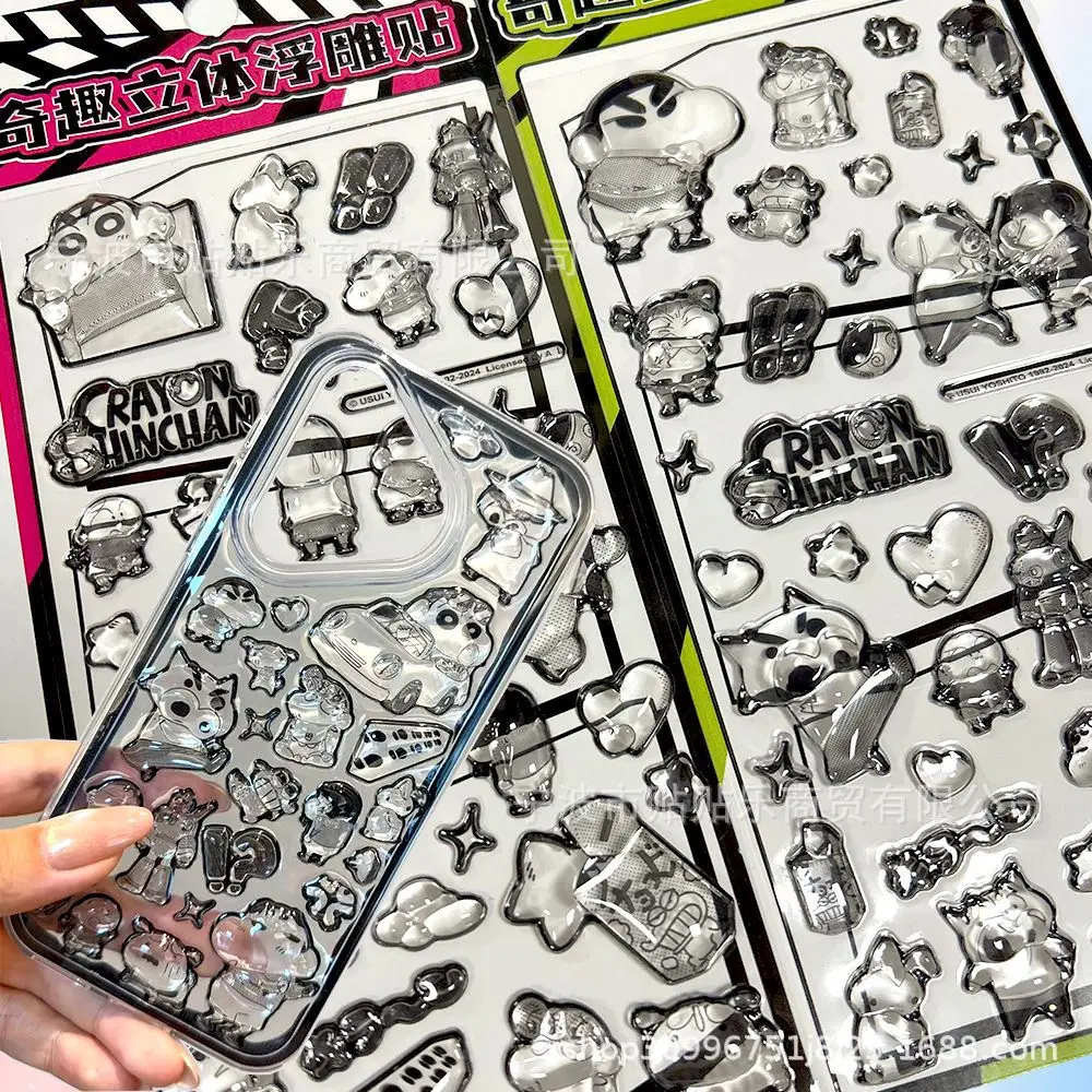 3d Crayon Shin-Chan Resin Stickers Set Hand Account Sticker Waterproof Anime Themed Diy Scrapbooking Decor Gifts Collectible