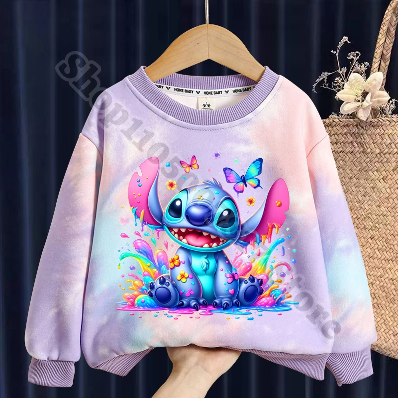 Disney Lilo Stitch Kids Cartoon Cute Sweatshirt Autumn Winter Clothing Children Long Sleeve Tops Boy Girl Anime Pullover Gifts