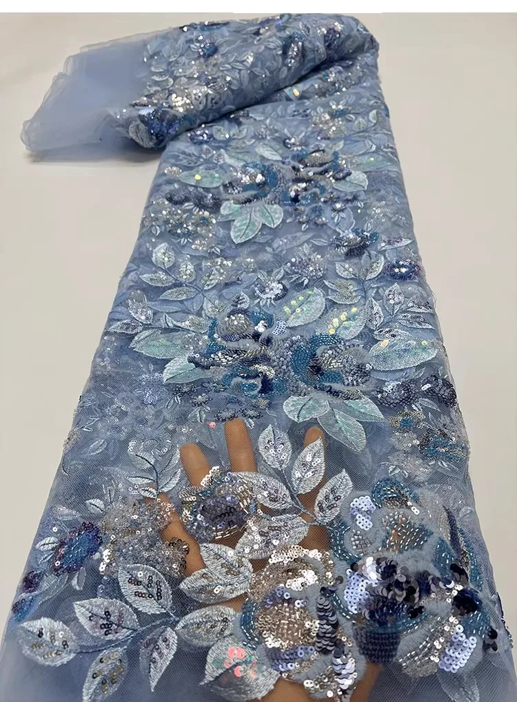 1yard nail bead flower shaped leaf sequin embroidery tela luxury Gauze Fabrics Fashion Design Wedding Dress diy sewing fabric
