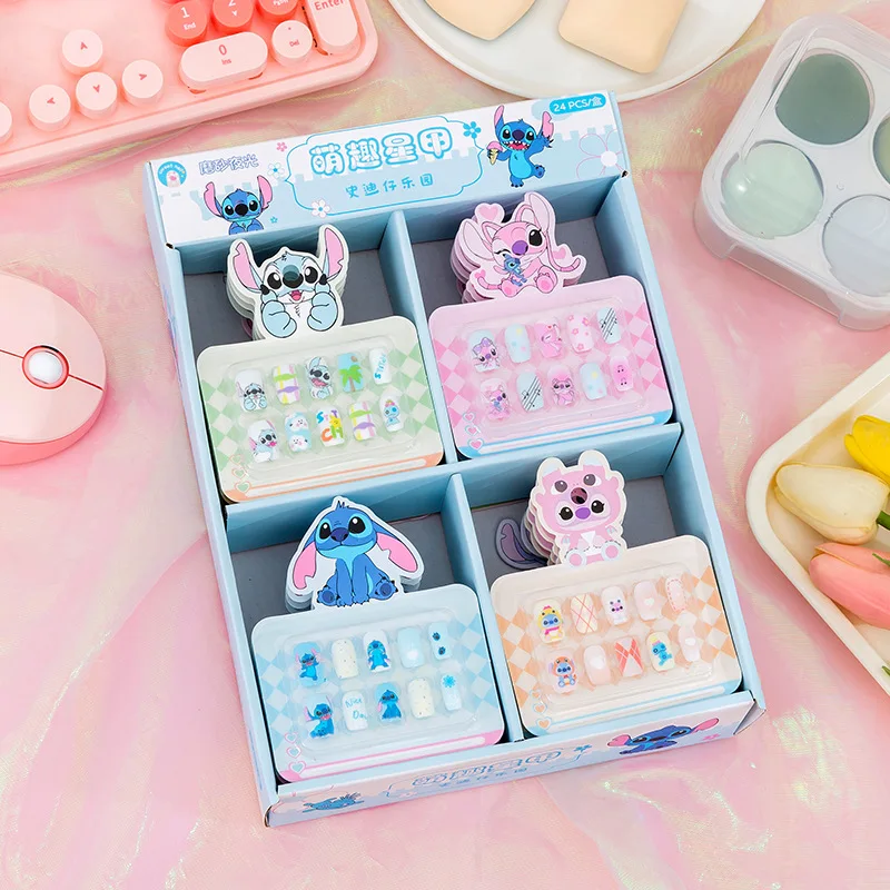 Cute Stitch Press on Kids Nails Cartoon Luminous Wearable Fake Nail Kawaii Children Girls Handmade False Nails Random 4pcs