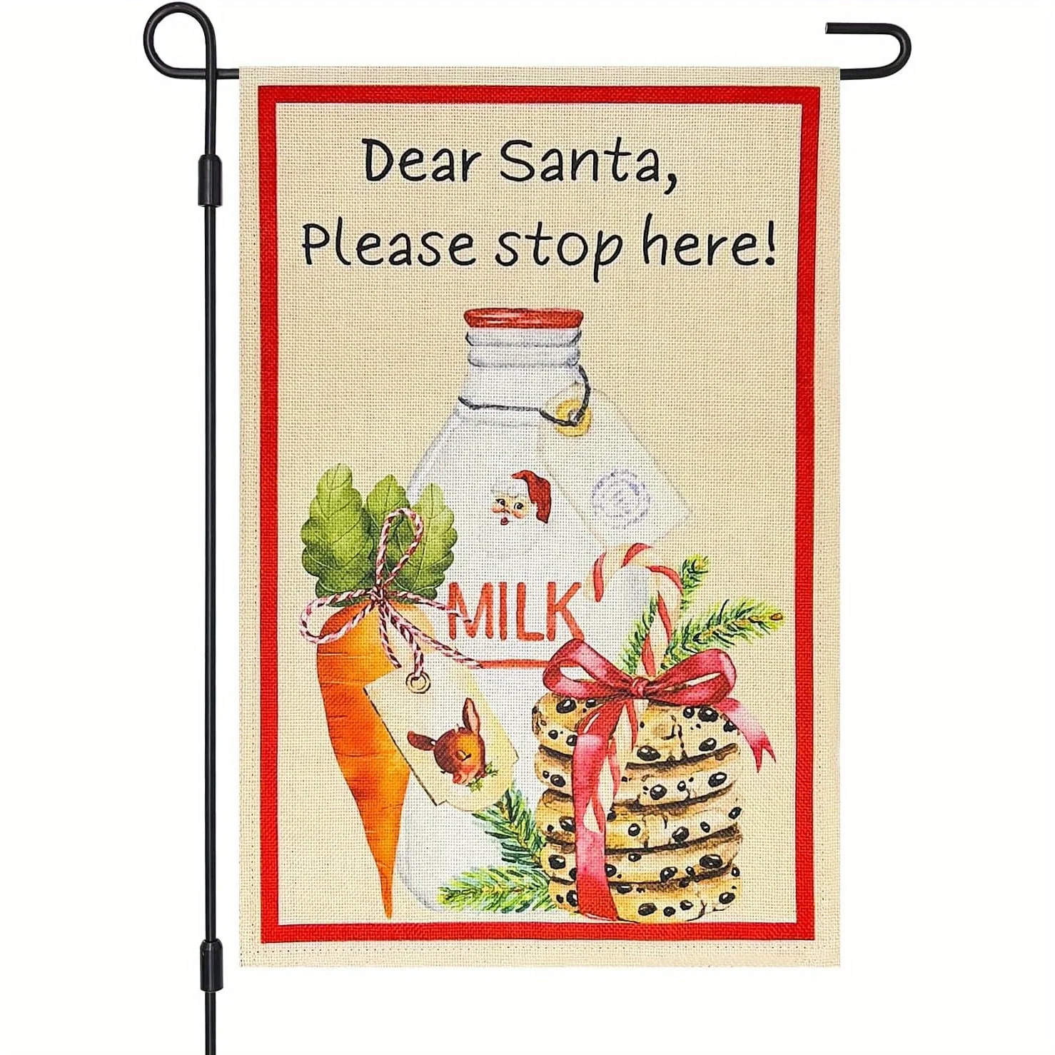 Dear Santa Please Stop Here Double-Sided Christmas Garden Flag Outside Yard Decoration with Santa Milk Jug Cookies
