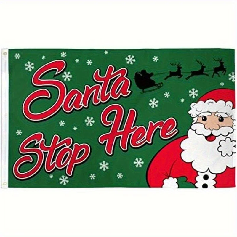 Santa Stop Here Christmas Flag 3x5ft for Holiday Parties, Home Decor, Shops, Gifts, Christmas Spirit 3x5ft Funny Printed Flags