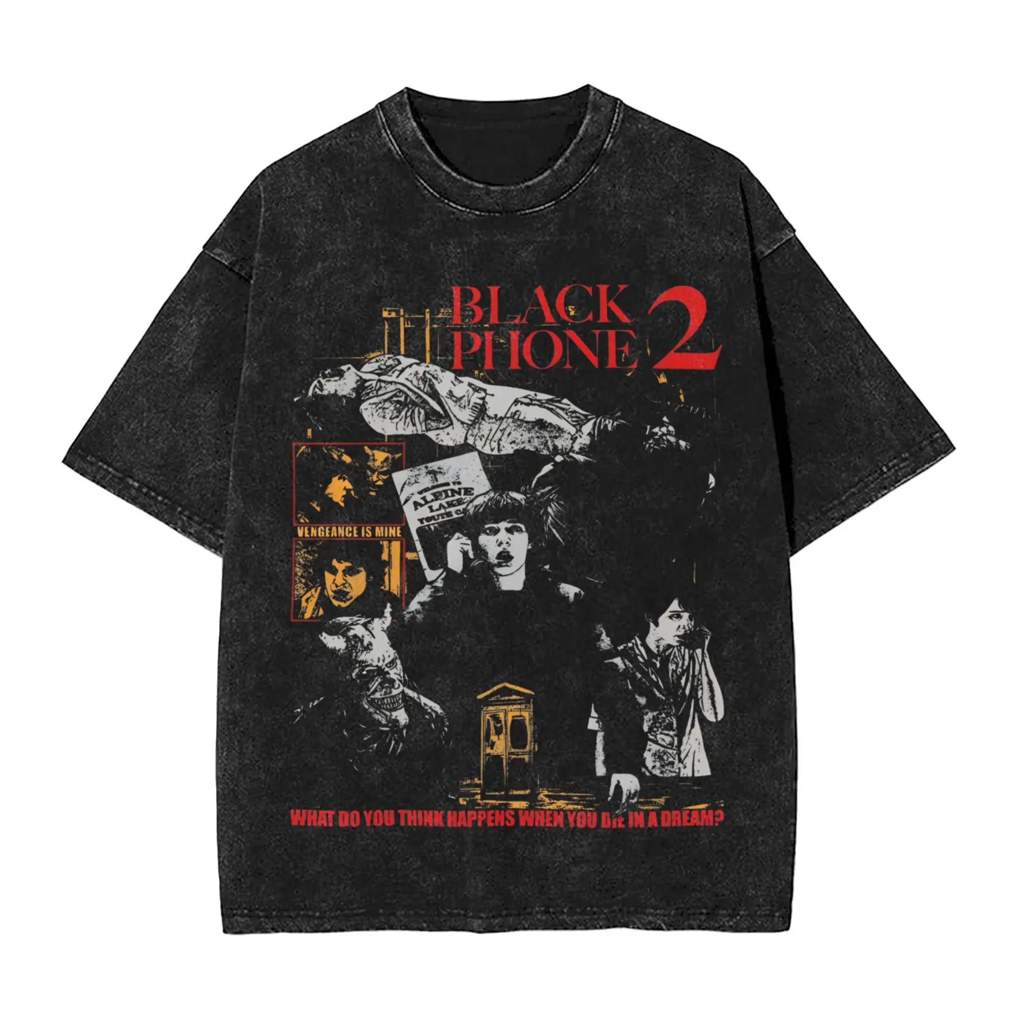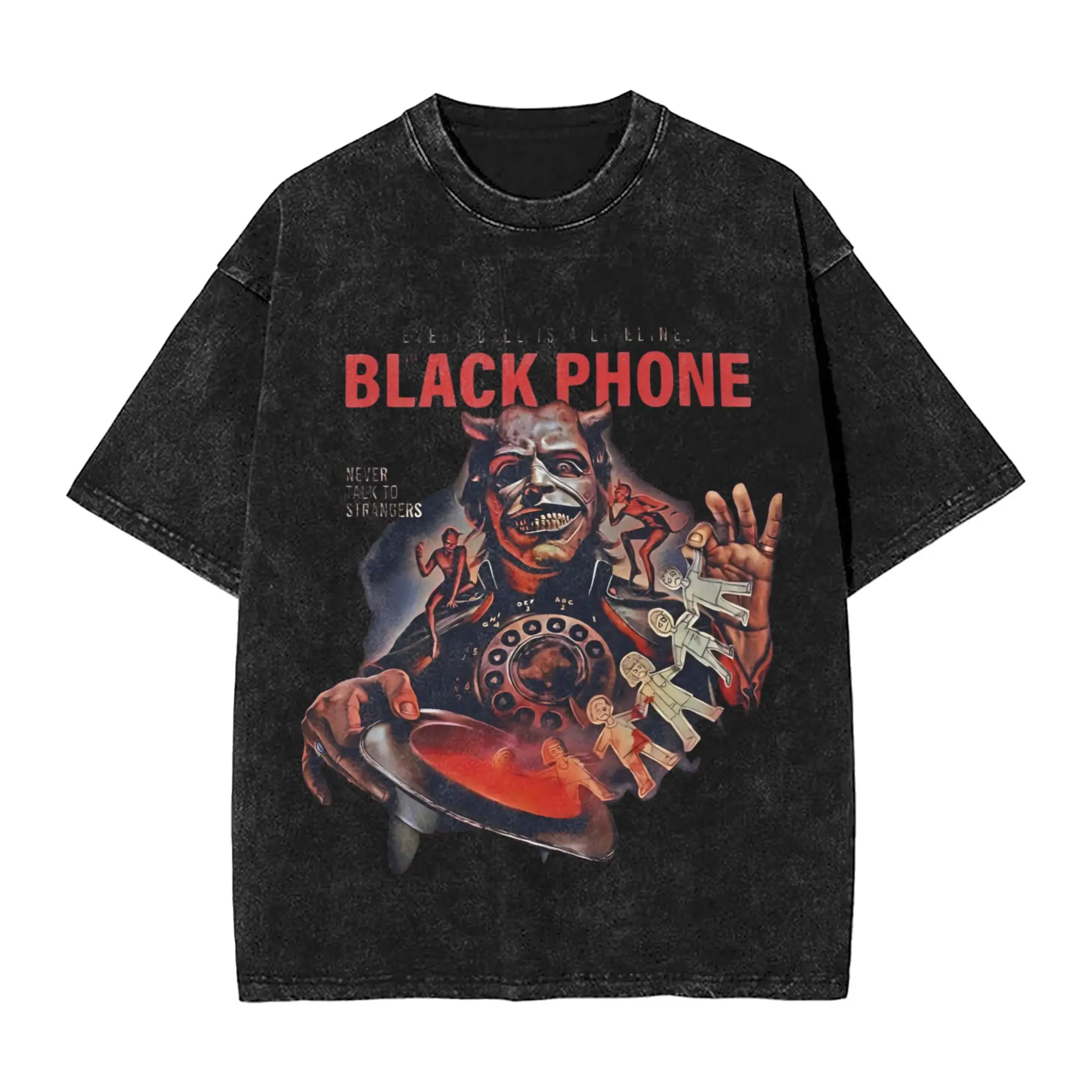 Black Phone and Never Talk To Strangers Washed T Shirts Streetwear Hip Hop Vintage T-Shirt Tees Tops for Men Women Short Sleeve