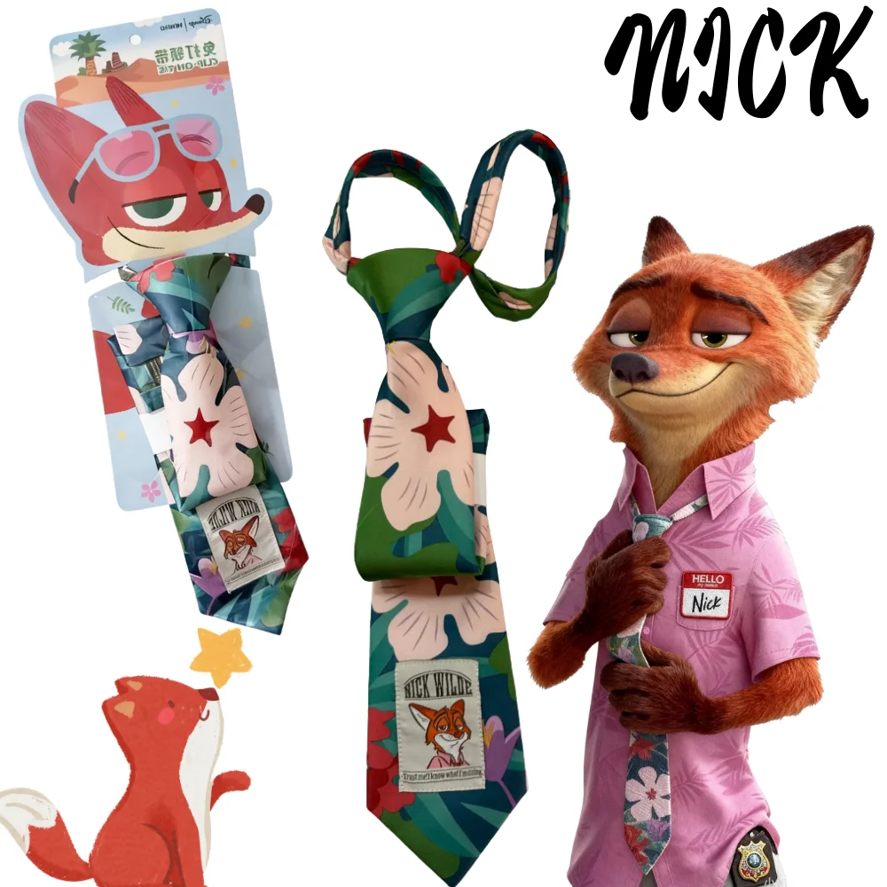 Crazy Zootopia Nick tie cartoon niche print casual accessory decoration design girlish heart style Party Cosplay Christmas gift