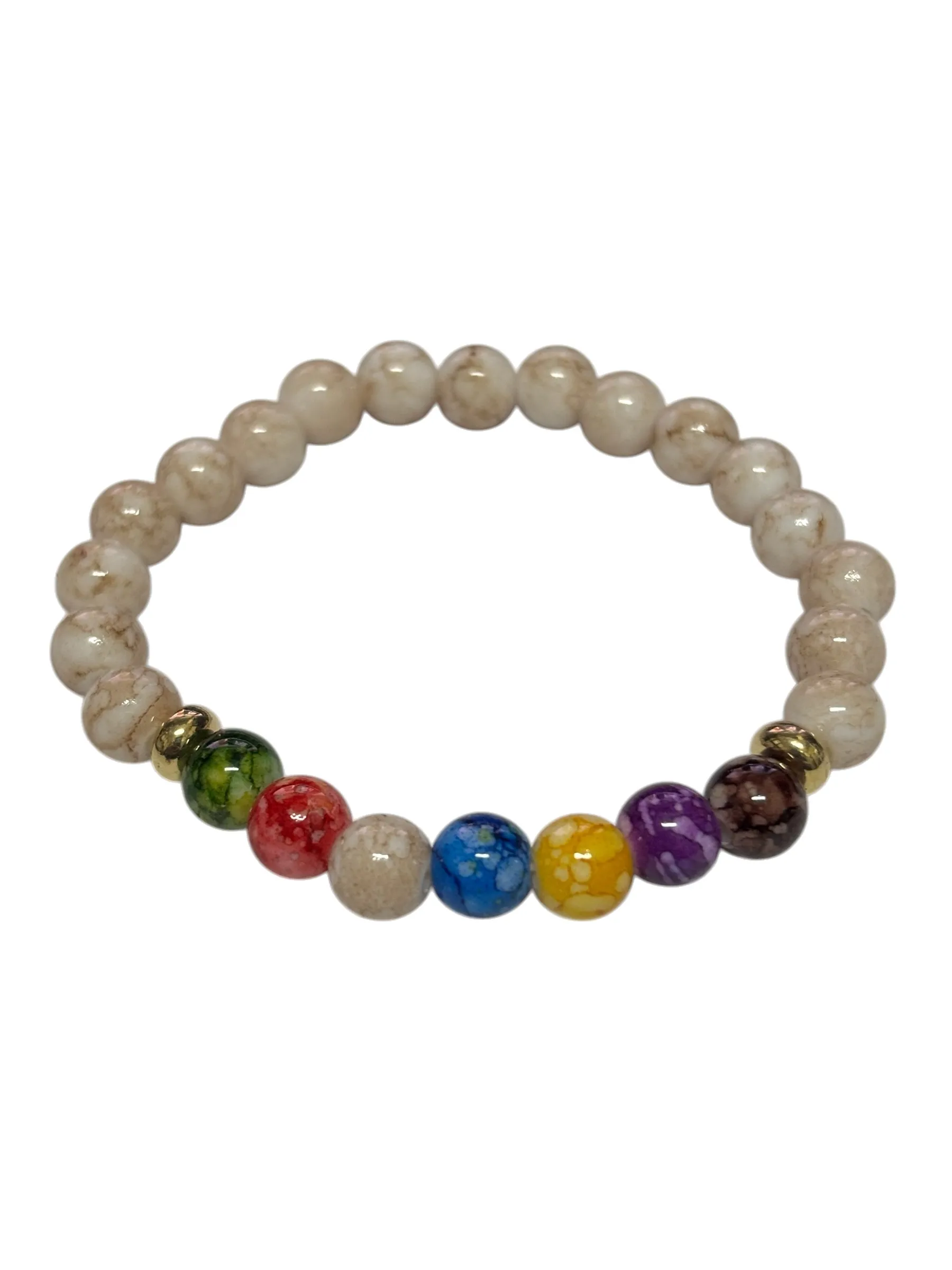 7 Chackra Bracelet 8 mm Diameter Made in Indian (Non-Minerals) Lapiz Lazuli, Amethyst, Seawater, Green Aventurine, Tiger's Eye, Sunstone, Red Agate