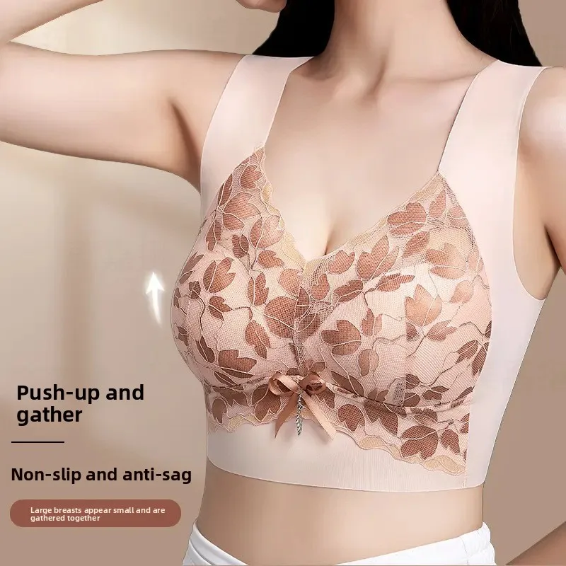 Four Season Ultra-thin No Steel Ring Luxurious Back Breathable Sexy Women's Bra Gathering Anti Sagging Plus Size Underwear