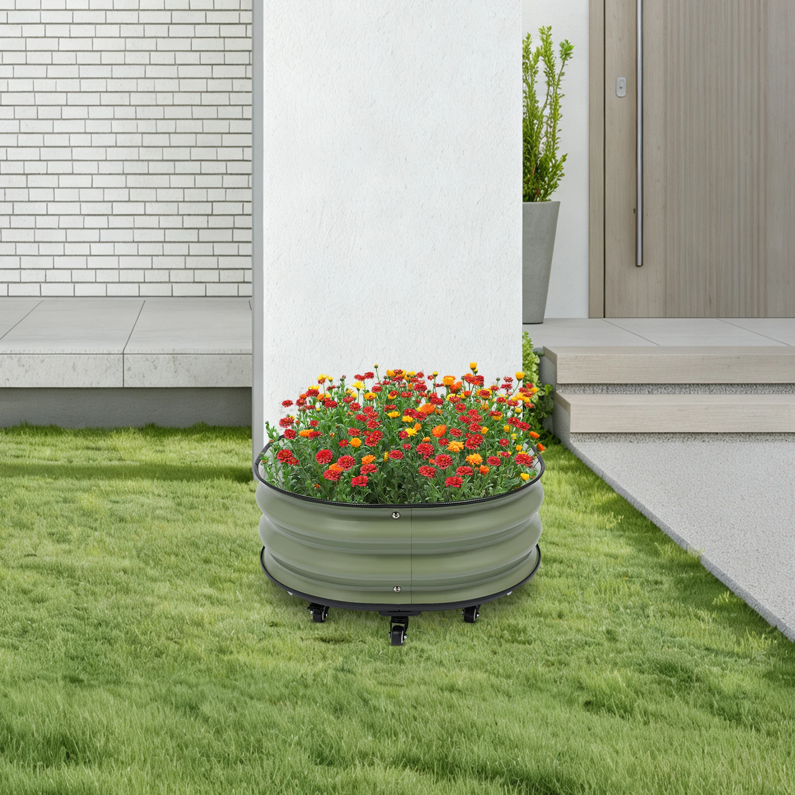 Metal Planter Box|60*60*30cm Metal Raised Garden Bed with Wheels and Base|Mobile Raised Garden Bed for Balcony Gardening