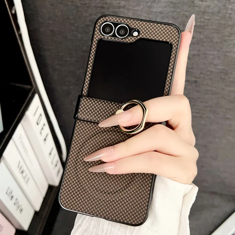 Luxury Finger Ring Stand Board Grid texture Magnetic Phone Case For Samsung Z Flip 7 6 5 flip 4 3 Magsafe Wireless Charge Cover