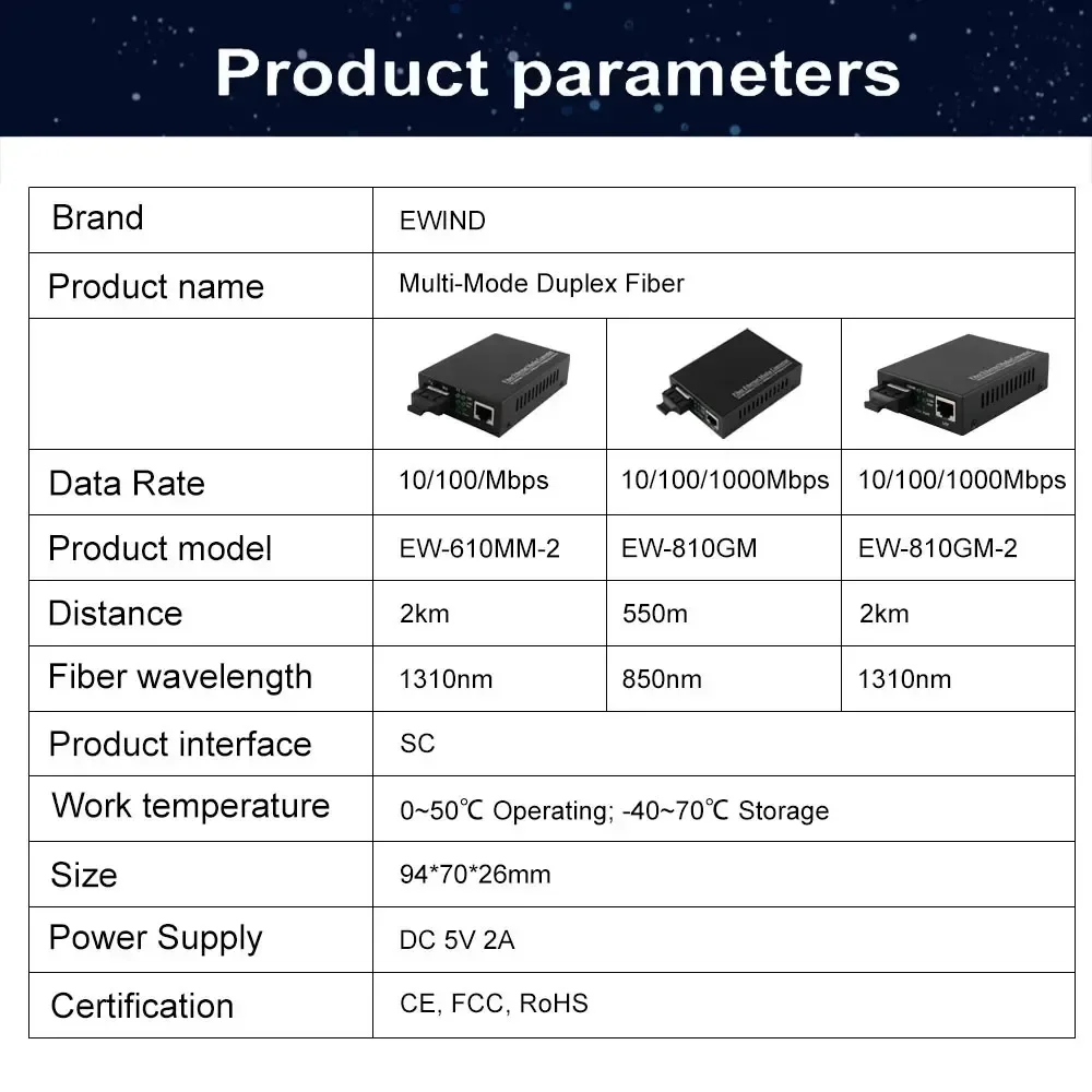 EWIND Gigabit Ethernet fiber media converter optic SC multimode transceiver dual fiber SC100/1000M RJ45 to1000Base LX/up to 2km
