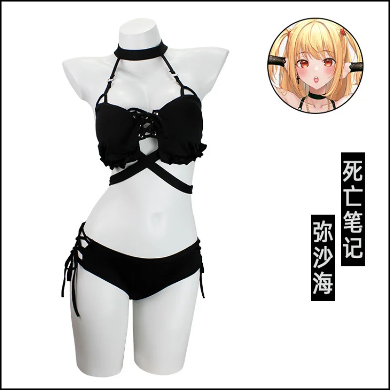 Anime Death Note MisaMisa Cosplay Costume Black Short Sleeves Tight Fitting Dress Wig Adult Woman Sexy Leisure Party Suitx,5;d'2