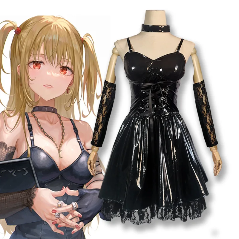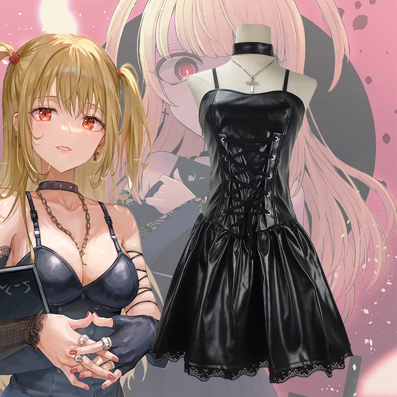 Death Note cosplay costume Misa Amane im leather sexy dress neck jewelry stockings uniform outfit Halloween wig }