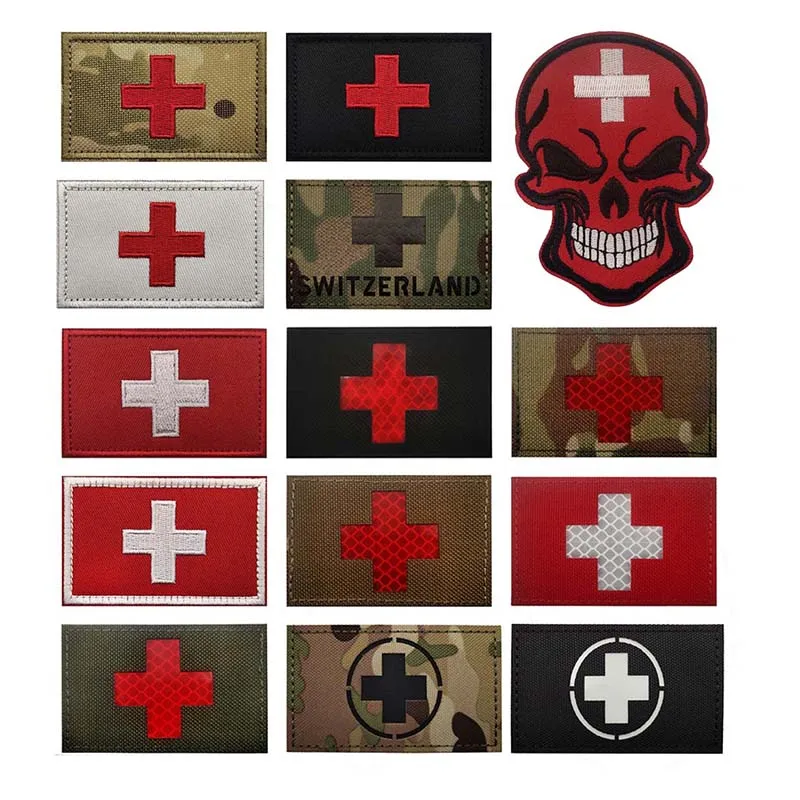 Switzerland Flag Swiss Badge Fabric Applique Embroidery Patches,IR Reflective Emblem Military Tactical Backpack Stickers