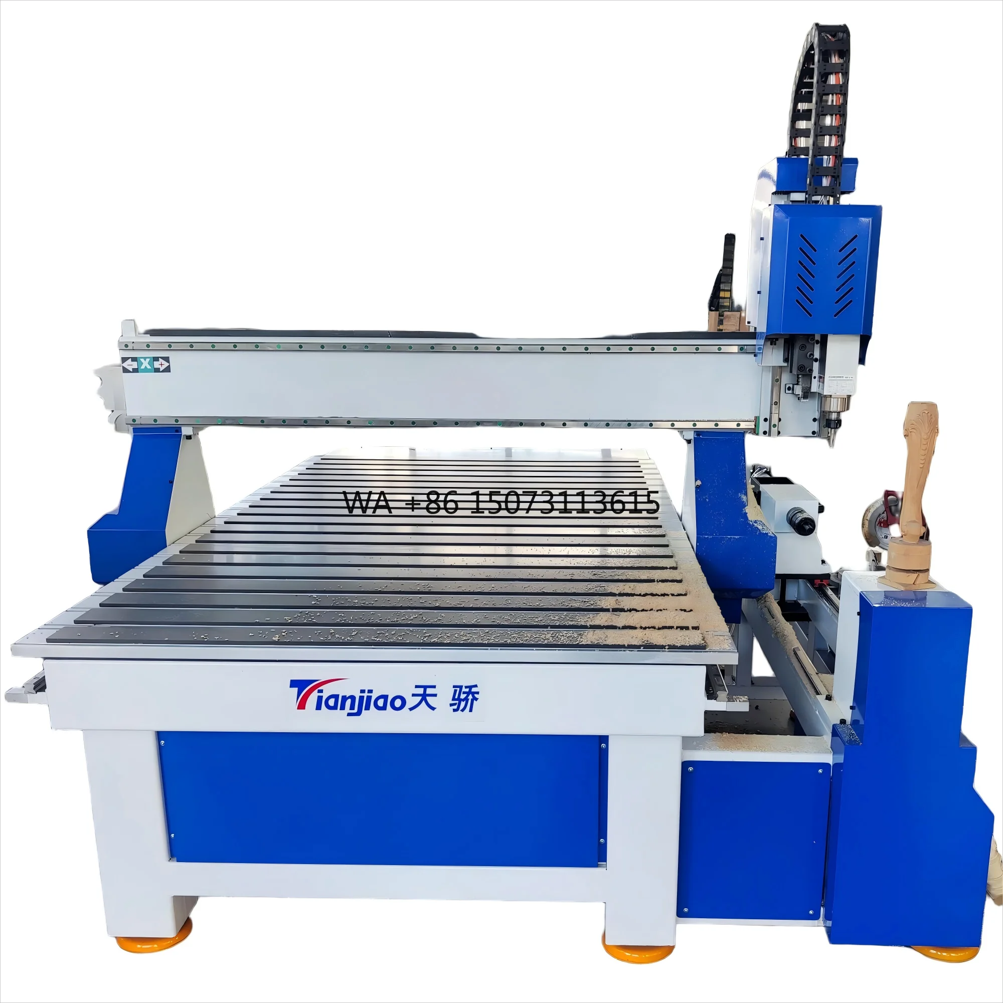 Jinan Popular 1325 4-Axis CNC Router Kit 3D Rotary Table Wood Lathe DIY CNC Machine Syntec DSP Control System Core Motor Popular