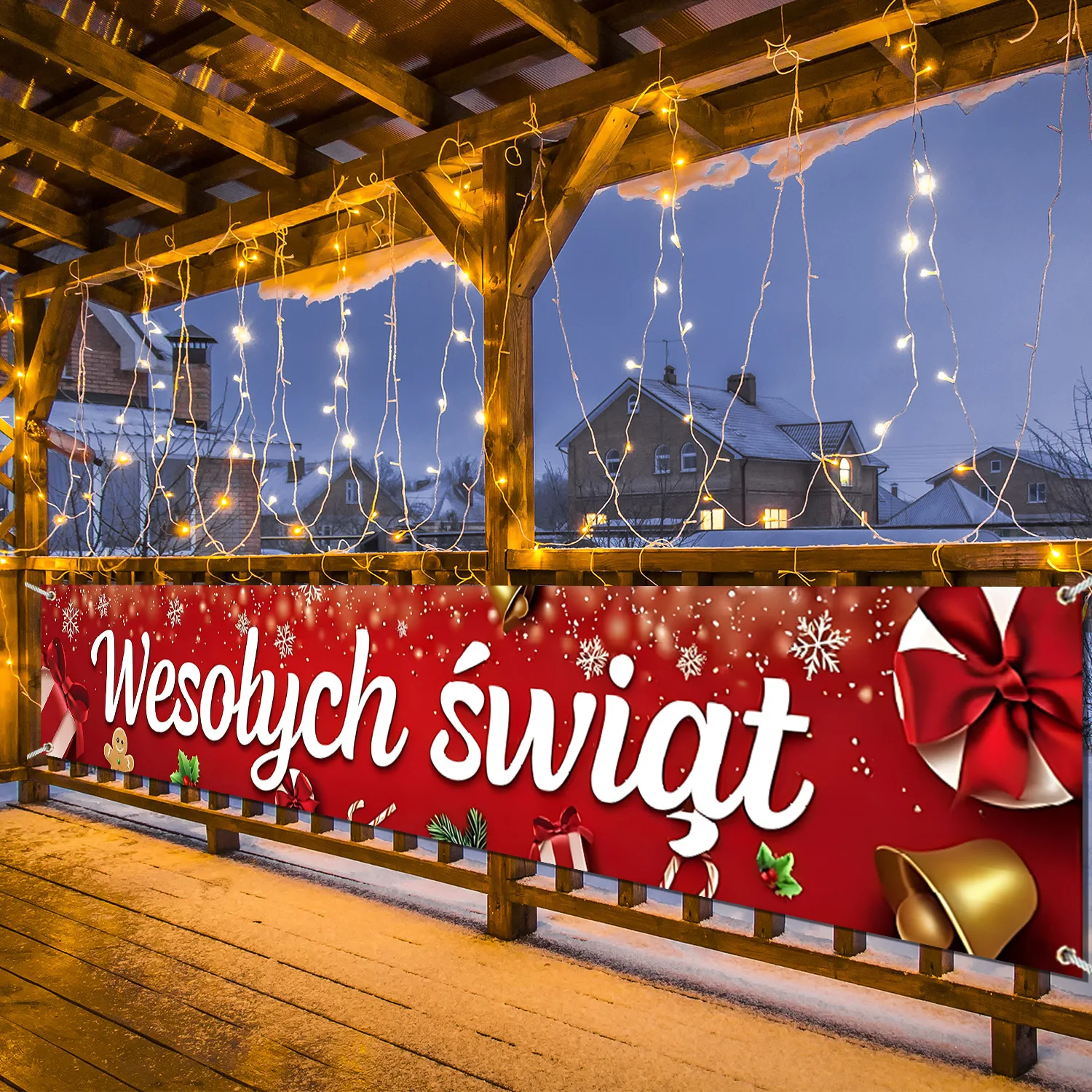 Polish Merry Christmas Banner Wesołych Świąt Yard Banner Christmas Holiday Party Fence Yard Sign Decoration Photo Background Mer