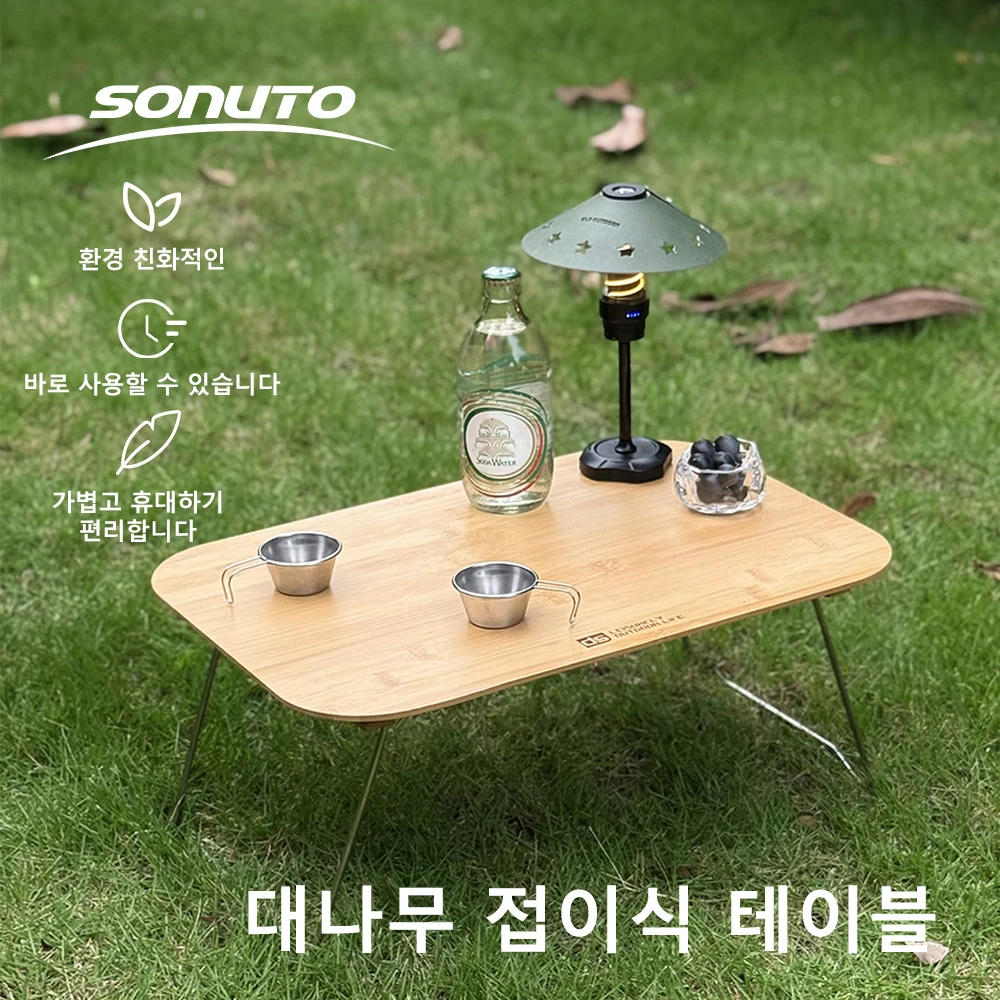 Sonuto Bamboo Folding Table, Stainless Steel Frame Lightweight Mini Desk, Camping Home Study Desk Laptop Reading Stand Indoor/Outdoor Use