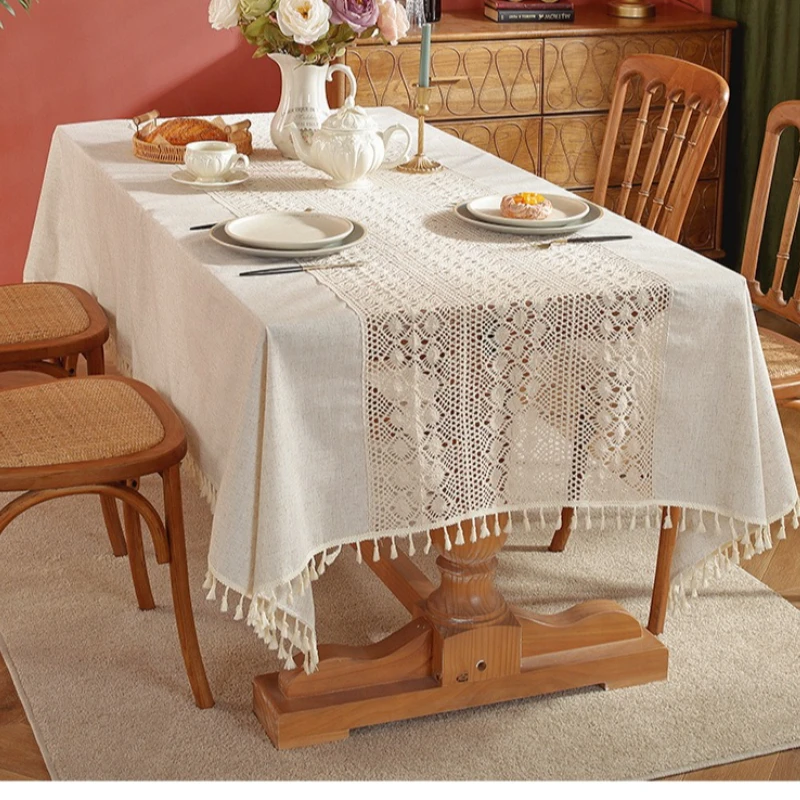 American Countryside Style Tablecloth Solid Color Light Luxury Lace Splicing Technology Coffee Table Tablecloth Home Furnishings